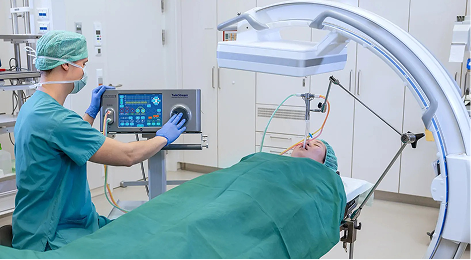 The TwinStreamTM EVO can also provide S-HFJVTM to conventionally intubated patients to immobilise the thorax and/or abdomen in Interventional Radiology, Interventional Cardiology or Interventional Urology. S-HFJVTM can reduce respiratory motion to a minimum, while assuring sufficient CO2 elimination, even during e.g. 5+ hour procedures.
